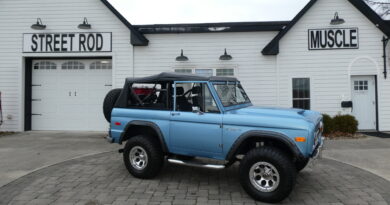 Truck rides smooth on adjustable coilovers and power rack and pinion steering. Mustang II independent front suspension with tubular A-arms. Fully boxed chassis painted in gloss black. Quick Performance 9-inch rear axle. Wilwood 4-wheel disc brakes around. Fuel tank removed from cab and relocated to bed with EFI fuel tank and pop up gas filler.