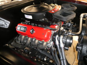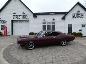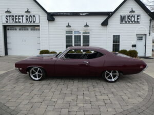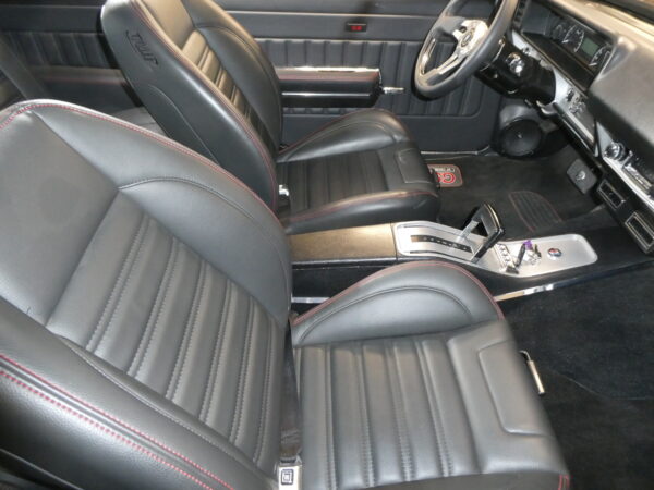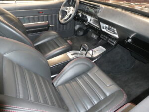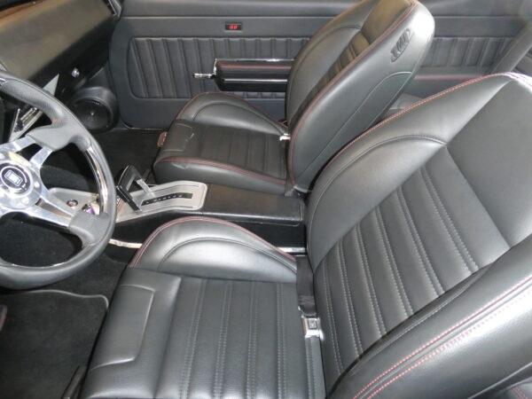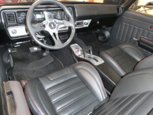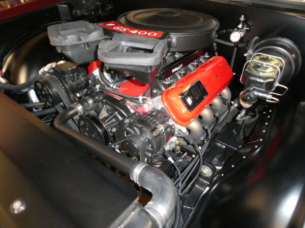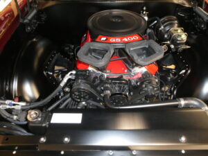 Inside, the car blends vintage style with modern comfort. An Infinitybox wiring system manages the electronics, supported by extensive sound-deadening for a refined driving experience. The dash features Dakota Digital instrumentation, while Vintage Air climate control keeps the cabin comfortable. Upholstery and interior finishes were carefully designed to retain the period-correct feel of a classic GS while incorporating modern convenience.