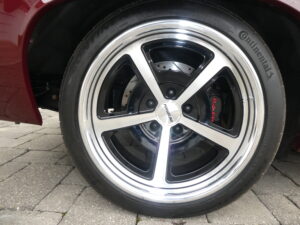 It rides on 18-inch Forgeline FL500 wheels wrapped in high-performance Continental Extreme Contact Sport Plus tires, giving the car a modern stance and outstanding road grip.